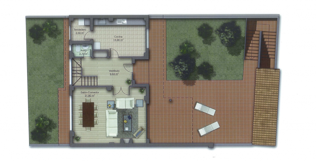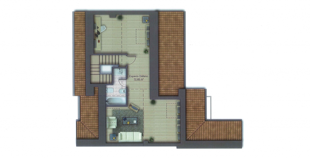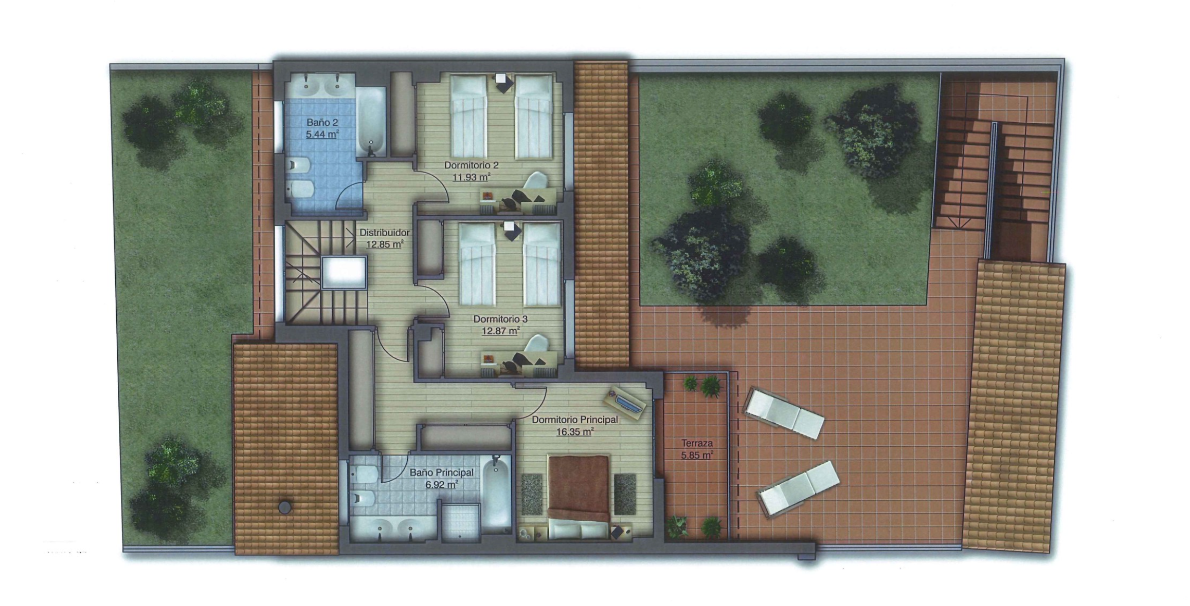 Chalet adosado y pareado de 208 m² útiles en parcela de 235 m² aproximadamente. Cuenta con tres dormitorios, dos baños completos, buhardilla y garaje para un coche.